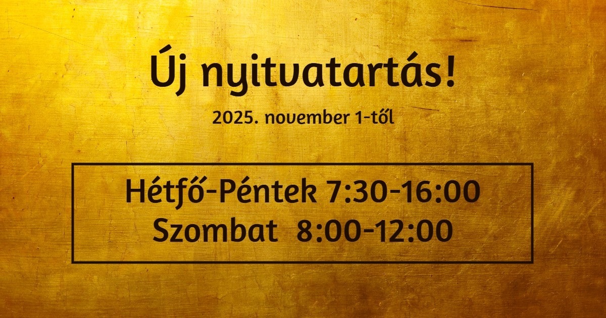 Felhívjuk figyelmüket, hogy november 1-jétől megváltozik a reggeli nyitásunk időpontja, ezentúl fél 8-tól fognak tudni jönni hozzánk!