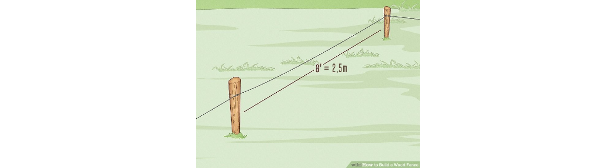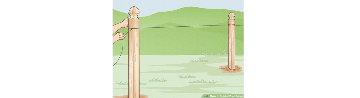 8. Helyezzük fel a kőműves zsinórt! Húzzunk egy zsinórt az egyik oszlop tetejétől a másik tetejéig, a talaj felett kimért, egyenlő magasságban. Ez segít abban, hogy a kerítés magassága mindenhol egyenlő maradjon.