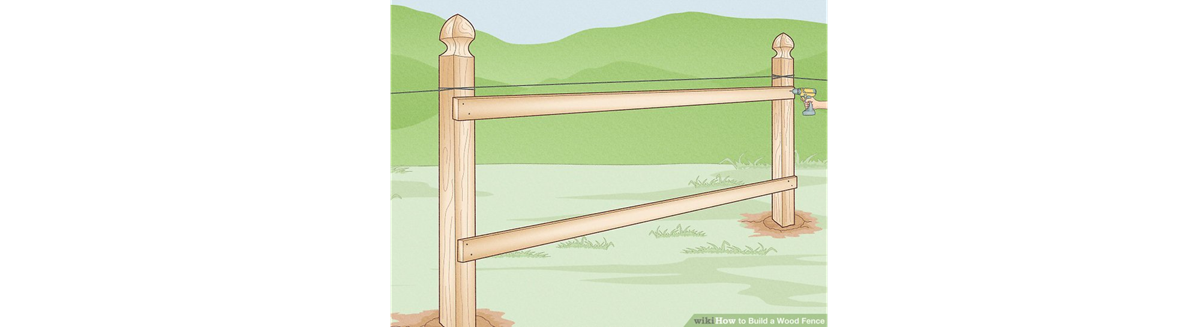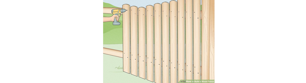 9. Rögzítsük a tartó deszkákat! Vágjunk szakaszonként 2-3 sínt vagy deszkát olyan hosszúságúra, hogy elérje az oszlopok közepeit. A sínek ne legyenek messzebb egymástól, mint 60 cm – így a legtöbb kerítésre 2-3 sín jut. Ahol tehetjük, használjunk egyetlen sínt/deszkát a kerítésszakasz teljes hosszában. Rögzítsük őket csavarokkal.