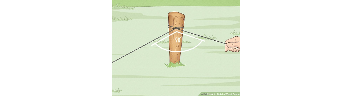 3. Helyezzünk karókat a sarkokba! A sarkoknak derékszögűeknek kell lenniük. Kössünk egy madzagot a karók köré, és húzzuk ki a következő karóig. Használjunk szögmérőt, hogy megbizonyosodjunk róla, hogy a sarkok valóban 90°-ot zárnak be.