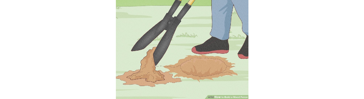 5. Ássuk ki a lyukakat! Az oszlopokat legalább olyan mélyre kell ásni, ami a magasságuk 1/3-a. A talajviszonyokat, a kerítés magasságát, a kerítés típusát és egyéb tényezőket is figyelembe kell venni az oszlop mélységének meghatározásakor. A furatnak pedig elég szélesnek kell lennie ahhoz, hogy behelyezésnél legyen hely az oszlop körül.